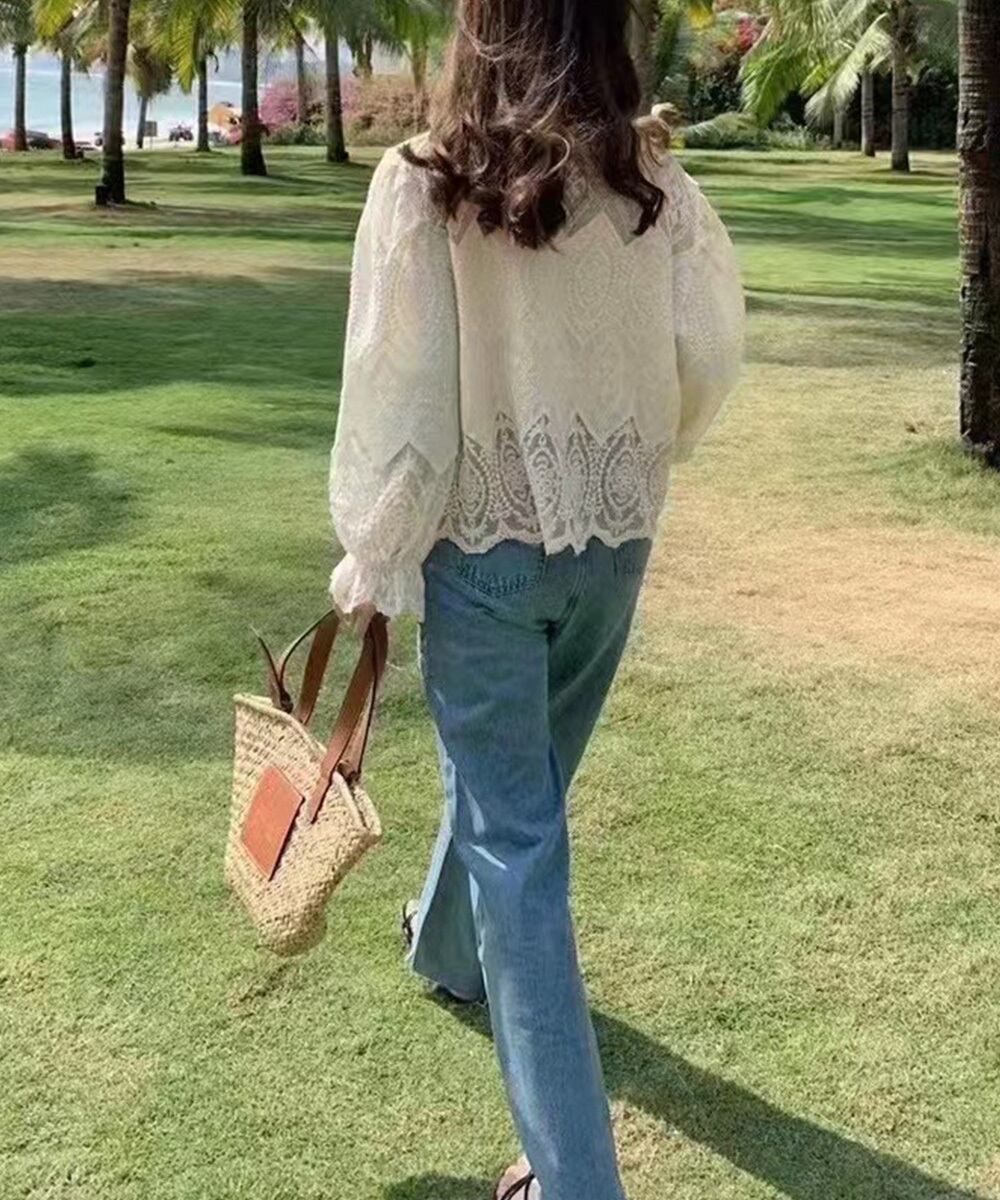 おしゃれで使い勝手抜群なレース透かし袖ボリュームブラウス!デザインと実用性を兼ね備えたこのブラウスは、春夏のコーディネートにぴったりで、カジュアルからフォーマルまで幅広く活躍します。透け感のあるレースとボリューム感あふれるシルエットが、女性らしい魅力を引き立てます!