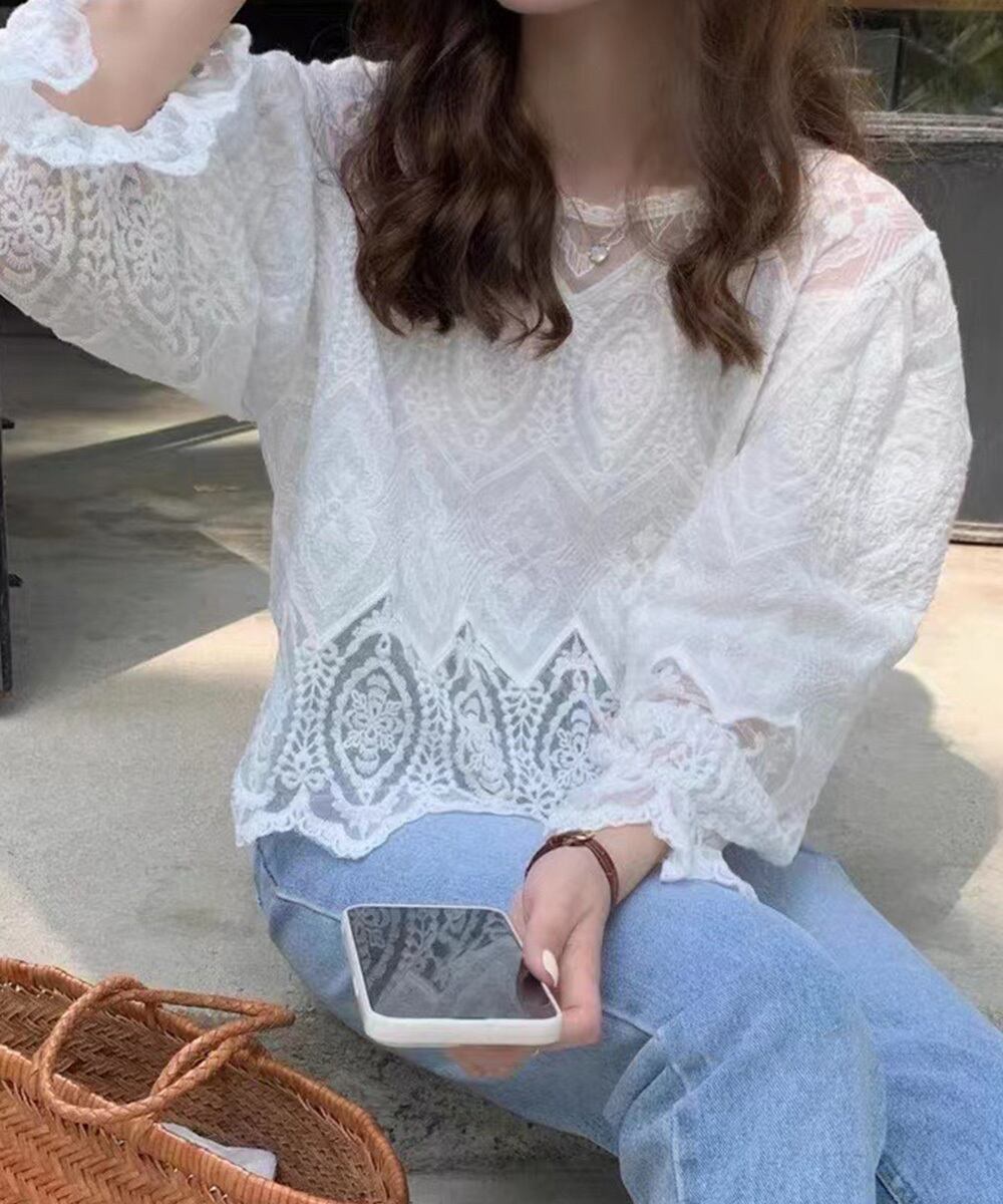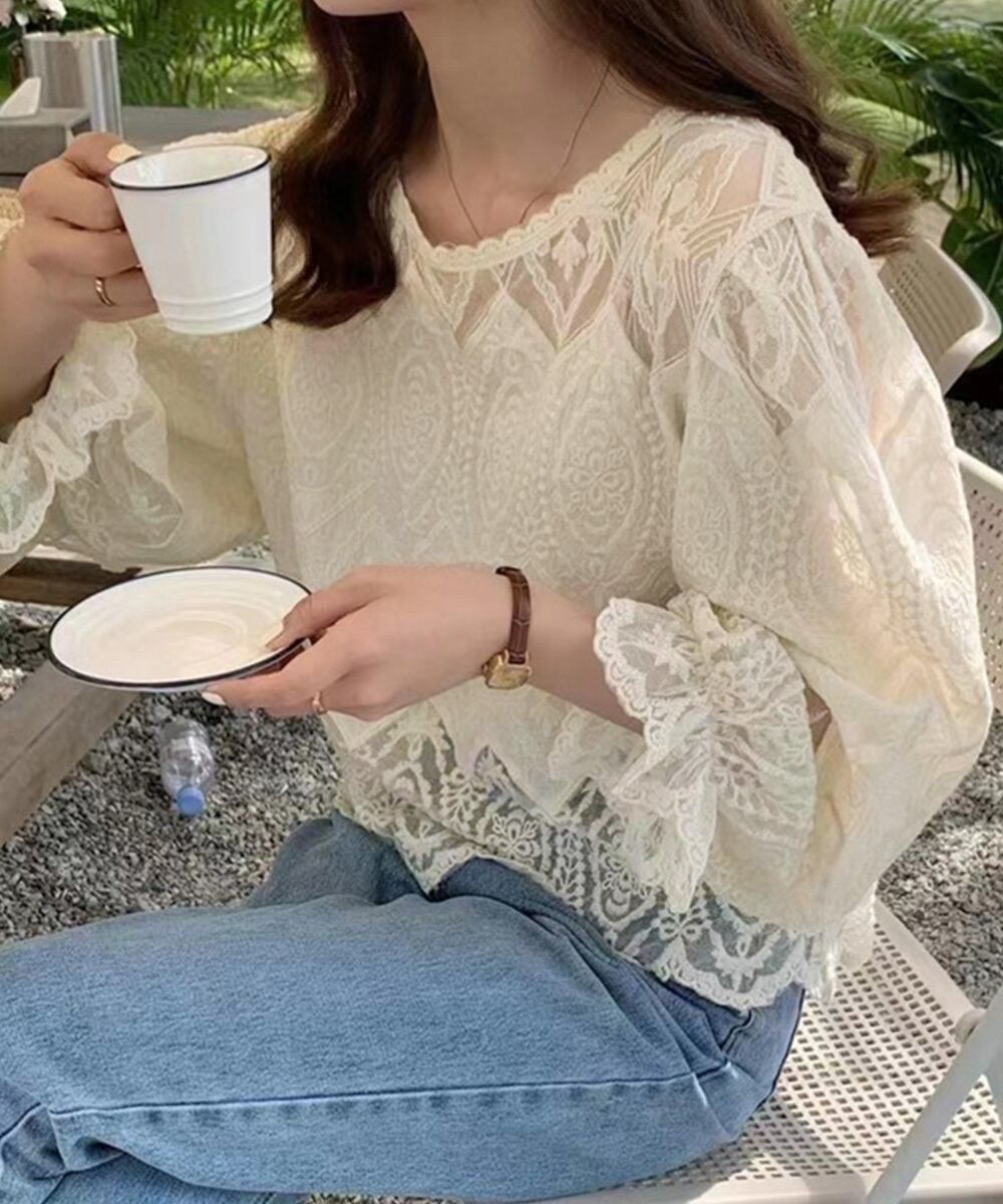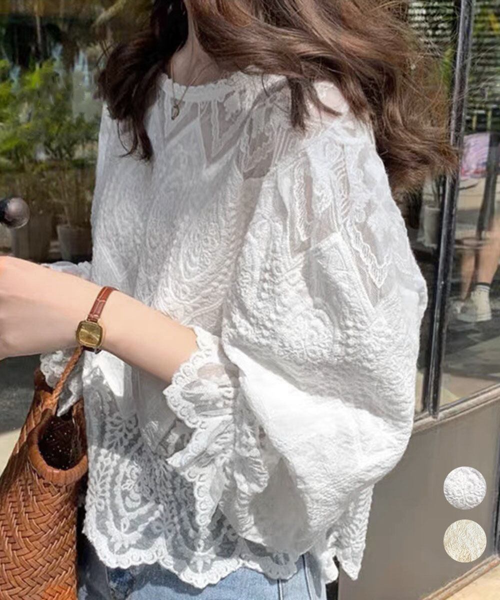 レース透かし袖ボリュームブラウス 春夏