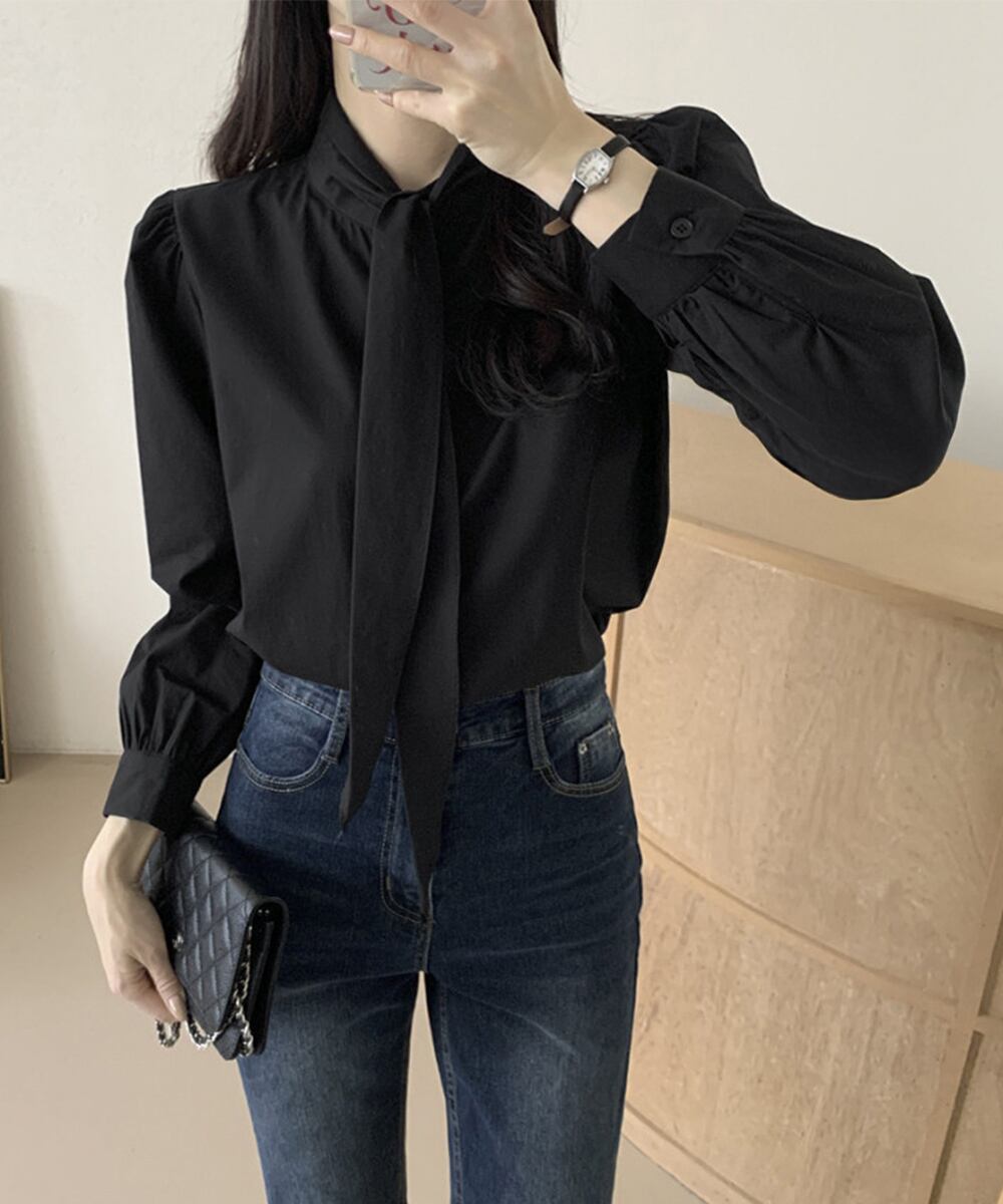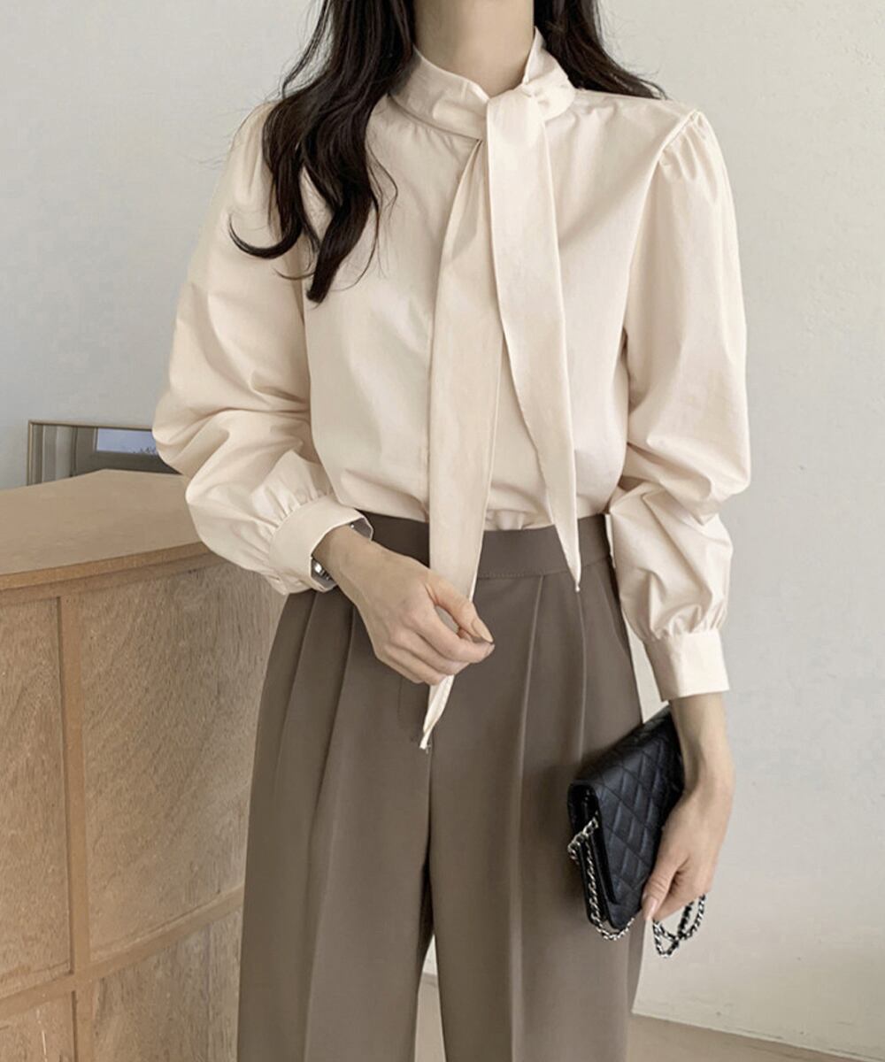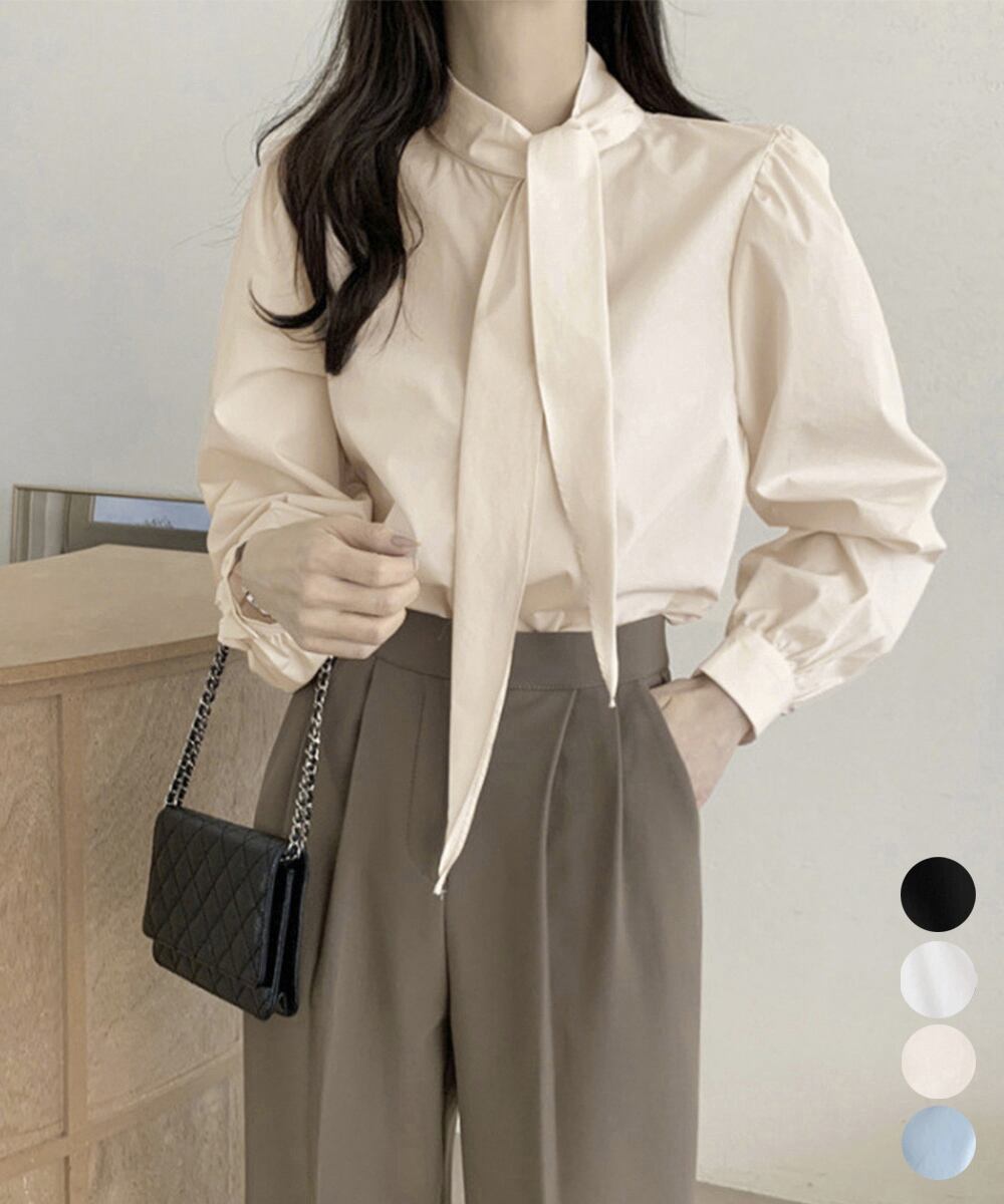 軽やかで肌触りの良い素材を使用しているため、長時間の着用でも快適です。シンプルながらも存在感のあるデザインは、どんなアイテムとも相性抜群で、コーディネートの幅が広がります。また、リボンタイの結び方によって印象が変わるので、その日の気分に合わせたスタイリングが楽しめるのも嬉しいポイントです!