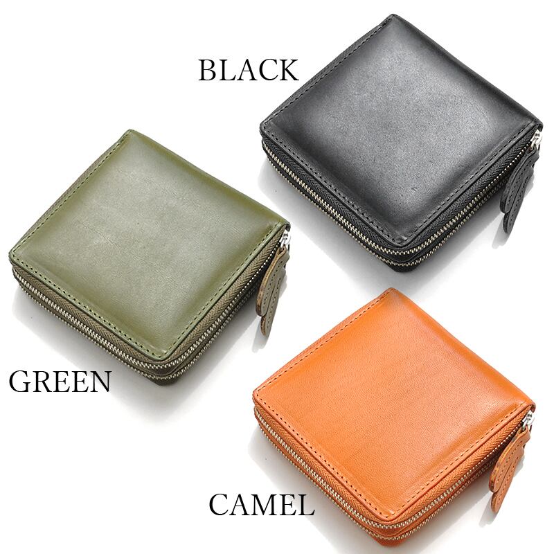 栃木レザー×ボンデッドレザーWラウンドファスナー短財布