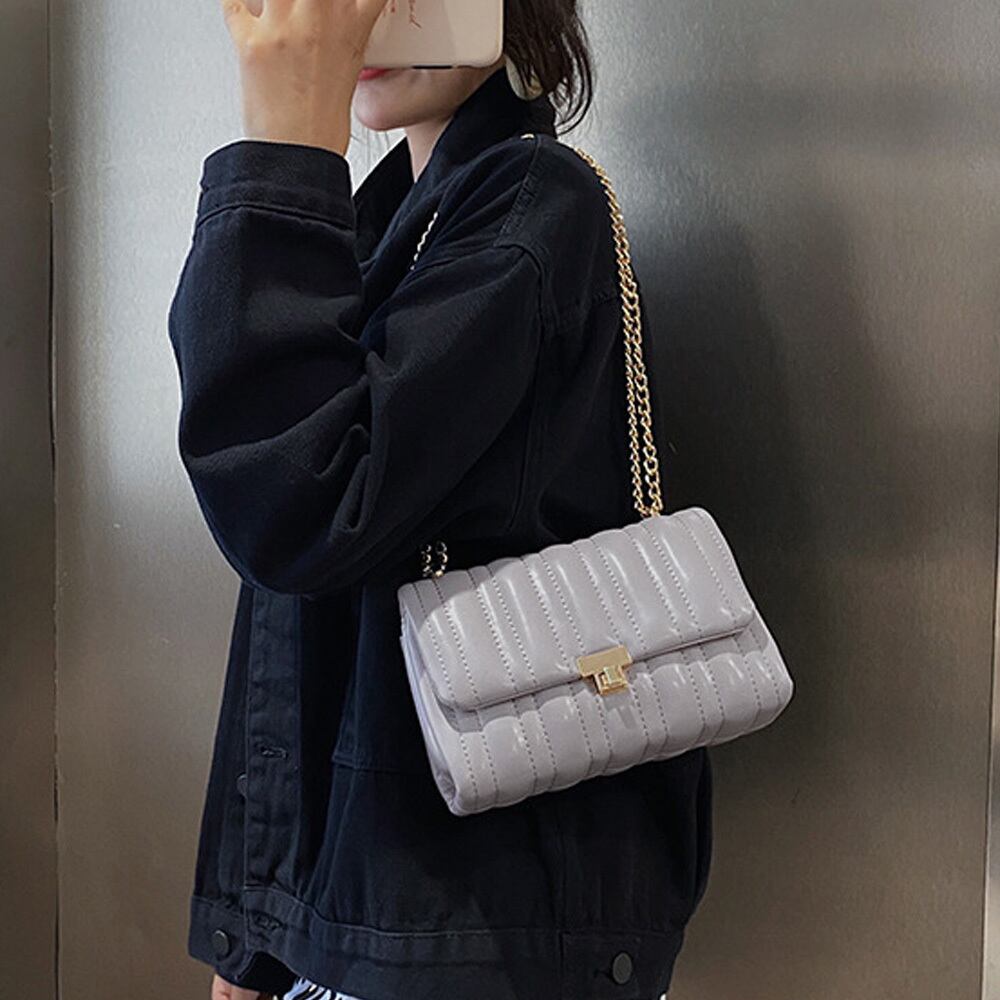 トレンド感満載のチェーンショルダーバッグ!韓国ファッションを取り入れたスタイリッシュなデザインで、さまざまなシーンにぴったりのアイテムです。軽やかな素材を使用し、デイリーユースにも安心。必要なアイテムをしっかりと収納できるため、スマホやお財布などもスッキリ整理できます。