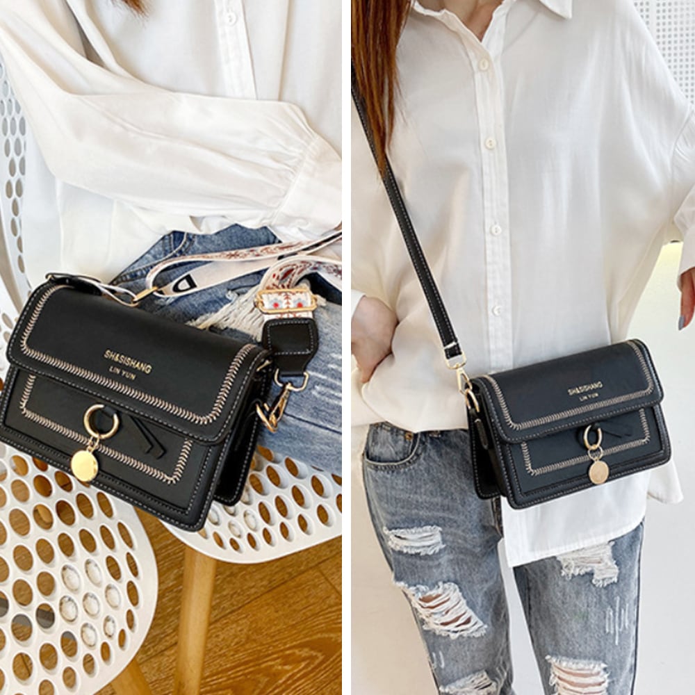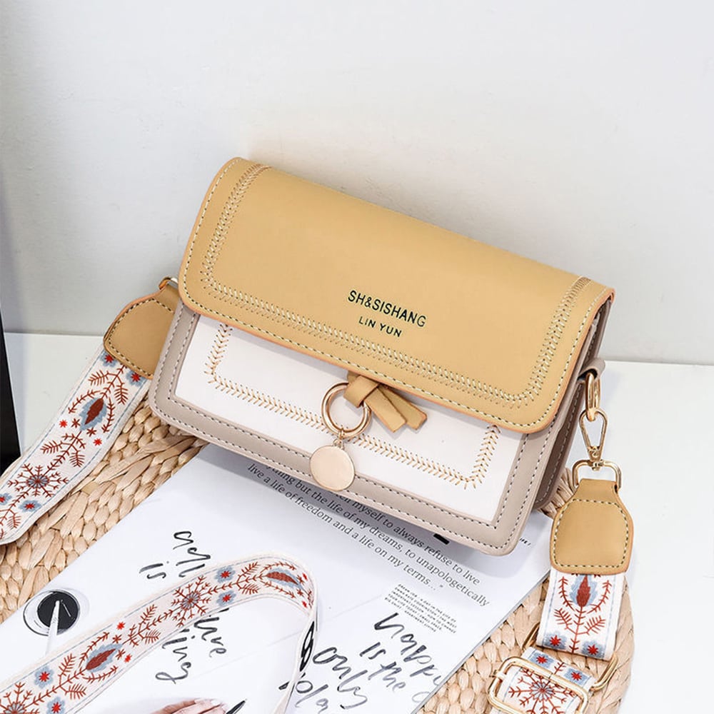※海外輸入品のため、商品の細部仕様は多少異なる場合がございます。予めご了承の上、ご注文お願い致します。ワイドストラップ バイカラー 韓国スクエアBAG カジュアル 斜めがけバッグ PUレザーメッセンジャーバッグ 大人可愛い
