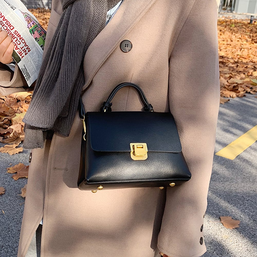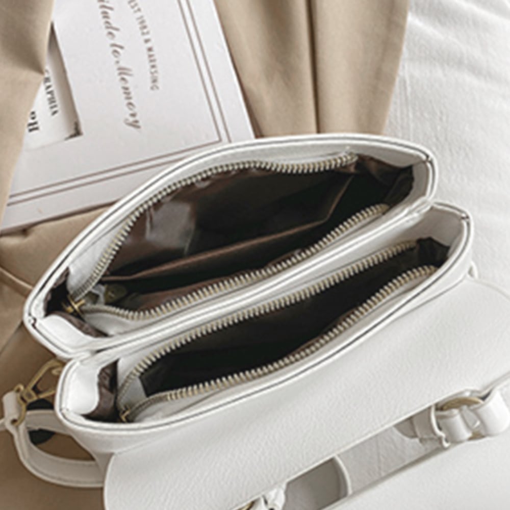 軽やかなフェイクレザーを使用し、デイリーユースでも安心。持っているだけでおしゃれ感を引き立ててくれる、シンプルで洗練されたデザインが特徴。肩掛けとしても手提げとしても使えるので、シーンに合わせたスタイリングが楽しめます。